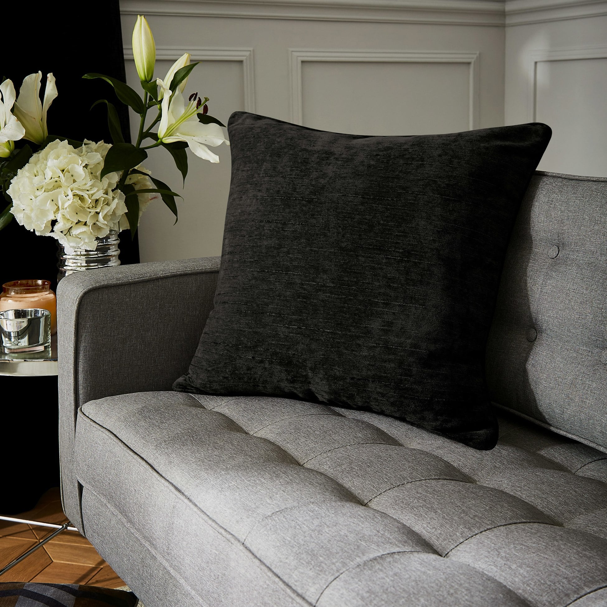 Hyperion Rackhams Selene Luxury Chenille Cushion - 55x55cm - 1 - Blackfrom £21.25 up to £24.99 Compare prices2→Crafted from a luxurious heavyweight woven slub chenille and finished with a complementary tonal piped edge detailing, this cushion adds a simple yet sophisticated look to your home interior.