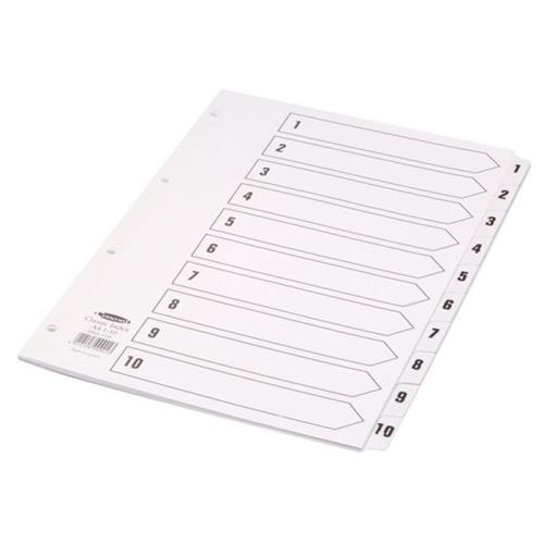 Concord Classic Index 1-10 A4 180gsm Board White with Clear Mylar Tabs 00901/CS9Premium range of white board indexes with clear Mylar tabs and punch holes. Reinforced tabs and punch holes for durability. Contents page for easy titling and cross reference. Ideal for use in all commercial and professional environments. Punched 4 holes. Size: A4. Numbered 1-10.Price from £2.39 up to £11.95 Compare prices and buy Concord Classic Index 1-10 A4 180gsm Board White with Clear Mylar Tabs 00901/CS9 Euroffice.co.uk (United Kingdom) →£2.00UKOfficeDirect.co.uk (United Kingdom) →£2.00OfficeStationery.co.uk (United Kingdom) →£3.00OfficeStationery.co.uk (United Kingdom) →£3.00RefreshCartridges.co.uk (United Kingdom) →£7.00Compare prices7→