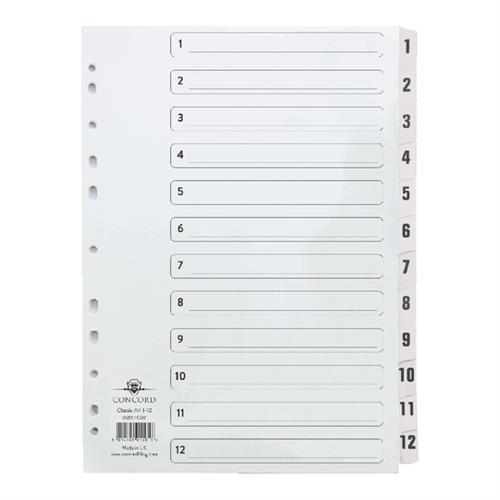 Concord Classic Index 1-12 A4 180gsm Board White with Clear Mylar Tabs 01201/CS12Premium range of white board indexes with clear Mylar tabs and punch holes. Reinforced tabs and punch holes for durability. Contents page for easy titling and cross reference. Ideal for use in all commercial and professional environments. Punched 4 holes. Size: A4. Numbered 1-10.Price from £2.78 up to £12.21 Compare prices and buy Concord Classic Index 1-12 A4 180gsm Board White with Clear Mylar Tabs 01201/CS12 Euroffice.co.uk (United Kingdom) →£3.00UKOfficeDirect.co.uk (United Kingdom) →£3.00OfficeStationery.co.uk (United Kingdom) →£3.00OfficeStationery.co.uk (United Kingdom) →£3.00Quzo.co.uk →£12.00Compare prices6→