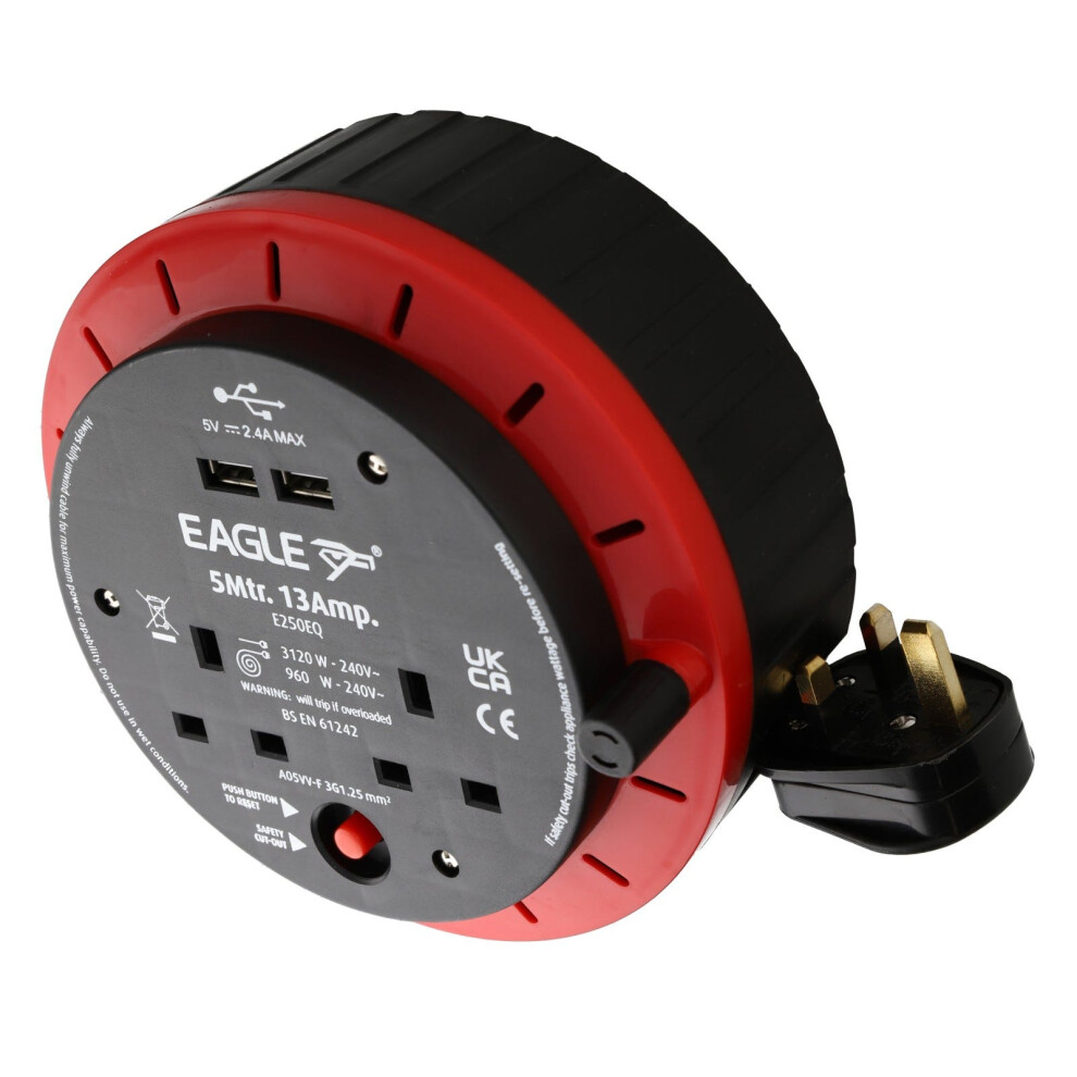 Eagle 2 Gang Mains Power Extension Reel with USB 2.4A Ports and Thermal Switch 5m 011795The Eagle 2 gang extension reel features 2 USB charging ports and a thermal cut out with reset button which prevents the risk of fire caused by a... £25.92OnBuy.comDelivery: in United Kingdom ReportBuy!