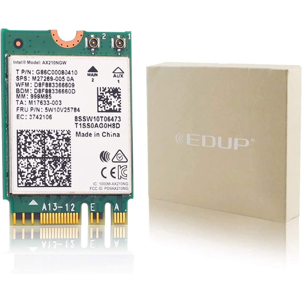 EDUP WiFi 6E Wireless Card Intel AX210 NGW Bluetooth 5.2 Tri-Band 5400Mbps Network Adapter for Laptop Support Windows 10/11 (64biM.2/NGFF WiFi 6E Wirelss Network Card for Laptop, AX210NGW Bluetooth 5.2 Tri-Band 802.11AX Networking Cards Support Windows 11/10 64bitPrice from £37.00 up to £37.57 Compare prices and buy EDUP WiFi 6E Wireless Card Intel AX210 NGW Bluetooth 5.2 Tri-Band 5400Mbps Network Adapter for Laptop Support Windows 10/11 (64bi OnBuy.com (United Kingdom) →£28.00OnBuy.com (United Kingdom) →£38.00Compare prices2→