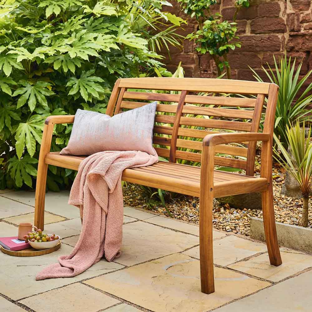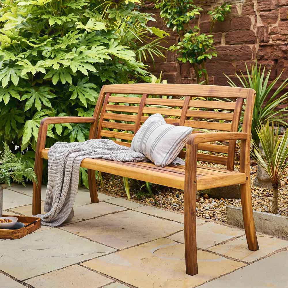 Ozone Outdoor Wooden 2 Seater Bench in Natural 4604.ALX329.95Buy!£Furnitureinfashion.netDelivery: to United Kingdom ReportEnhance your garden with timeless charm using the Ozone Outdoor Wooden 2 Seater Bench in Natural by Furniture in Fashion. Inspired by classic British outdoor furniture design, this elegant bench offer more→s the perfect blend of comfort, durability, and natural beauty. Its traditional slatted back and gently curved arms create a relaxing seating experience, making it ideal for quiet moments, social gatherings, or simply enjoying your outdoor surroundings. Crafted from premium acacia hardwood, this bench showcases a warm, natural finish that highlights the rich grain of the wood. Designed to withstand outdoor conditions, it provides both strength and weather resistance while maintaining its