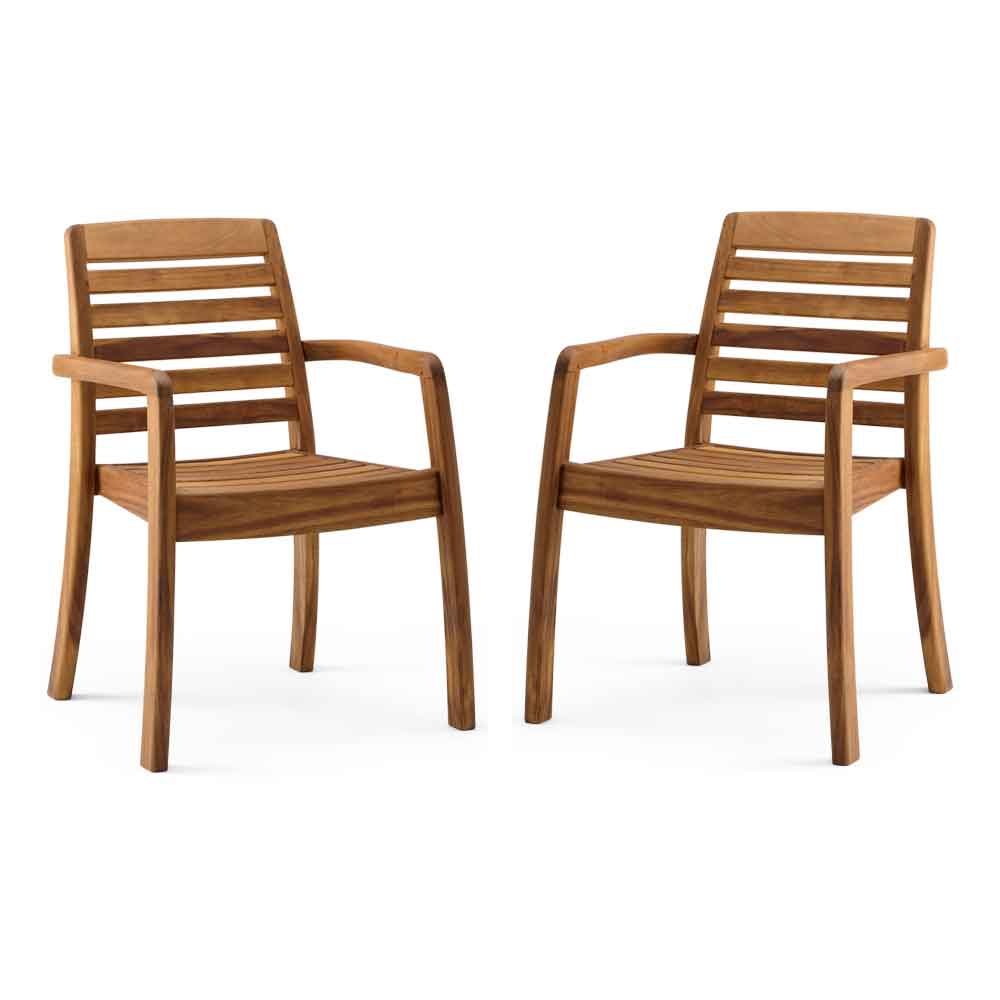 Ozone Outdoor Wooden Dining Chair Pair Without Arms in Natural 4651.ALX259.95Buy!£Furnitureinfashion.netDelivery: to United Kingdom ReportBring simplicity and timeless elegance to your outdoor dining area with the Ozone Outdoor Wooden Dining Chair Pair Without Arms in Natural by Furniture in Fashion. Designed for practicality and classi more→c appeal, this side chair offers a clean, streamlined look that fits effortlessly into any garden, patio, or terrace setting. Its armless design makes it perfect for compact spaces while still providing comfortable seating for everyday outdoor dining. Crafted from premium acacia hardwood, this dining chair features a smooth, oiled natural finish that enhances the woods rich grain and texture. Built for durability and outdoor performance, it offers a sturdy yet lightweight structure, making it