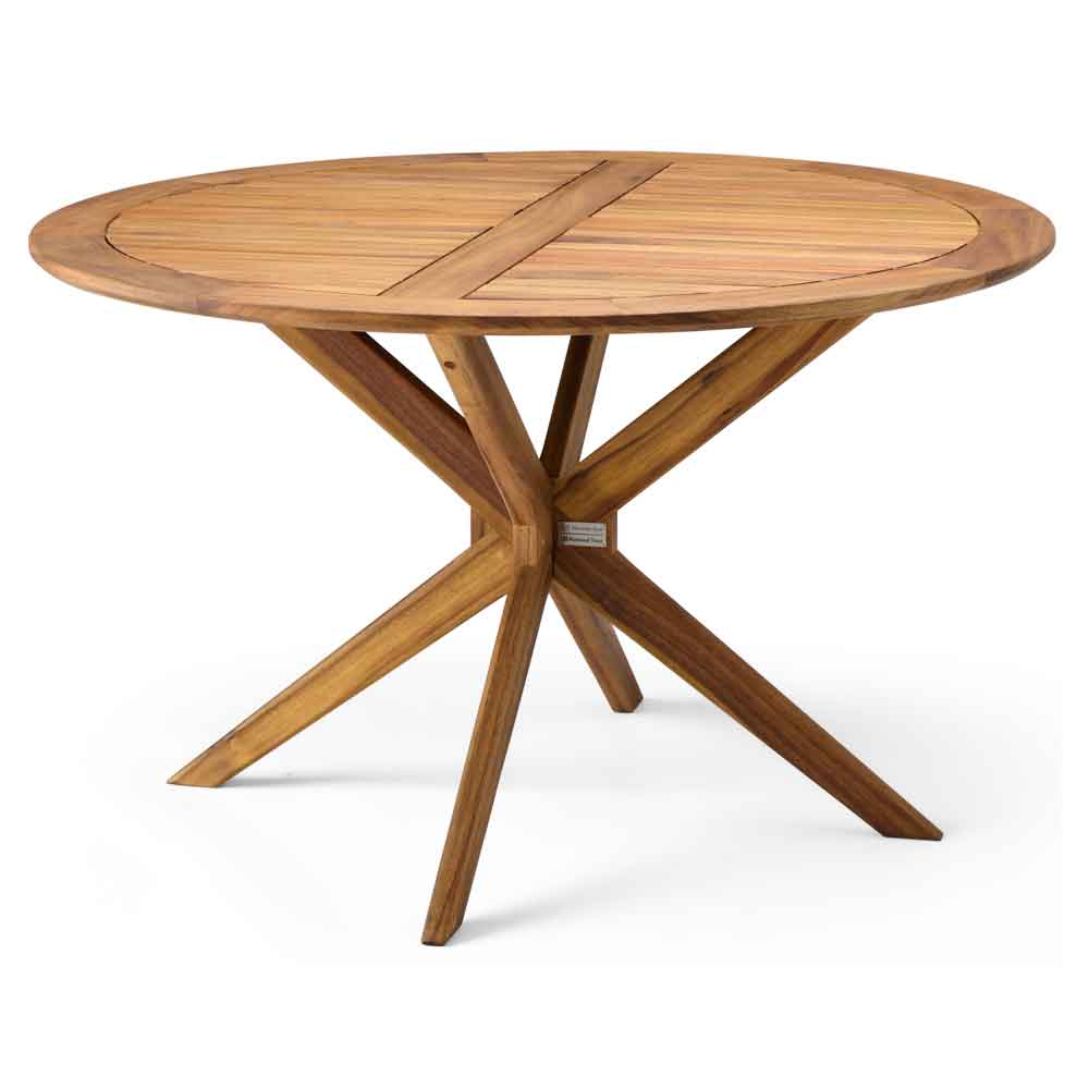 Ozone Round Outdoor Wooden Dining Table in Natural 4645.ALX379.95Buy!£Furnitureinfashion.netDelivery: to United Kingdom ReportCreate a warm and sociable outdoor dining experience with the Ozone Round Outdoor Wooden Dining Table in Natural by Furniture in Fashion. Designed with timeless appeal, this beautifully crafted round more→table encourages conversation and togetherness, making it the perfect centrepiece for garden gatherings, family meals, or relaxed outdoor entertaining. Its elegant circular form adds a soft, inviting touch to any patio or outdoor setting. Expertly constructed from premium acacia hardwood, this dining table features a smooth, natural oiled finish that enhances the woods rich grain while offering durability for outdoor use. Built to withstand the elements, it combines long-lasting strength with