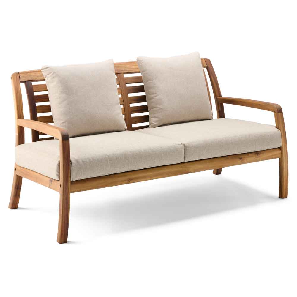 Ozone Wooden Lounge 2 Seater Sofa in Natural 4622.ALX699.95Buy!£Furnitureinfashion.netDelivery: to United Kingdom ReportCreate a warm and inviting outdoor seating area with the Ozone Wooden Lounge Sofa in Natural by Furniture in Fashion. Designed with timeless elegance and comfort in mind, this beautifully crafted sofa more→is perfect for relaxing with family or entertaining guests in your garden or patio. Its classic design and natural wood tones bring a refined yet welcoming feel to any outdoor setting. Expertly made from high-quality acacia hardwood, this lounge sofa features a durable oiled finish that enhances the natural grain while providing long-lasting outdoor performance. Paired with comfortable cushions, it offers a perfect balance of style and relaxation. Built for both durability and aesthetic appeal,