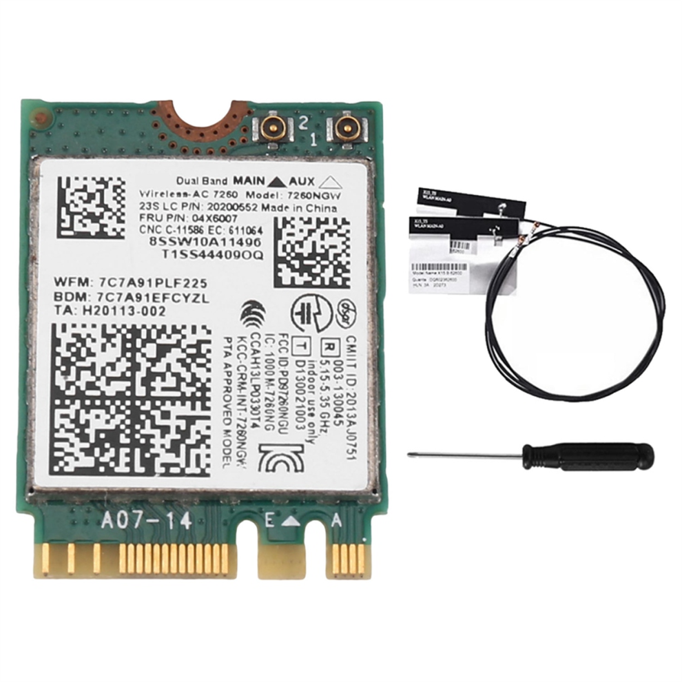 7260NGW 7260AC WiFi Card+Antenna 2.4G/5G BT4.0 for X250 X240Model:7260NGW( 04X6007) Interface:NGFF(/E),USB Frequency Band:2.4,5 GHz Network Standard:802.11ac Max Speed:867Mbps BT4.0 Driver Support:For... £4.70OnBuy.comDelivery: in United Kingdom ReportBuy!