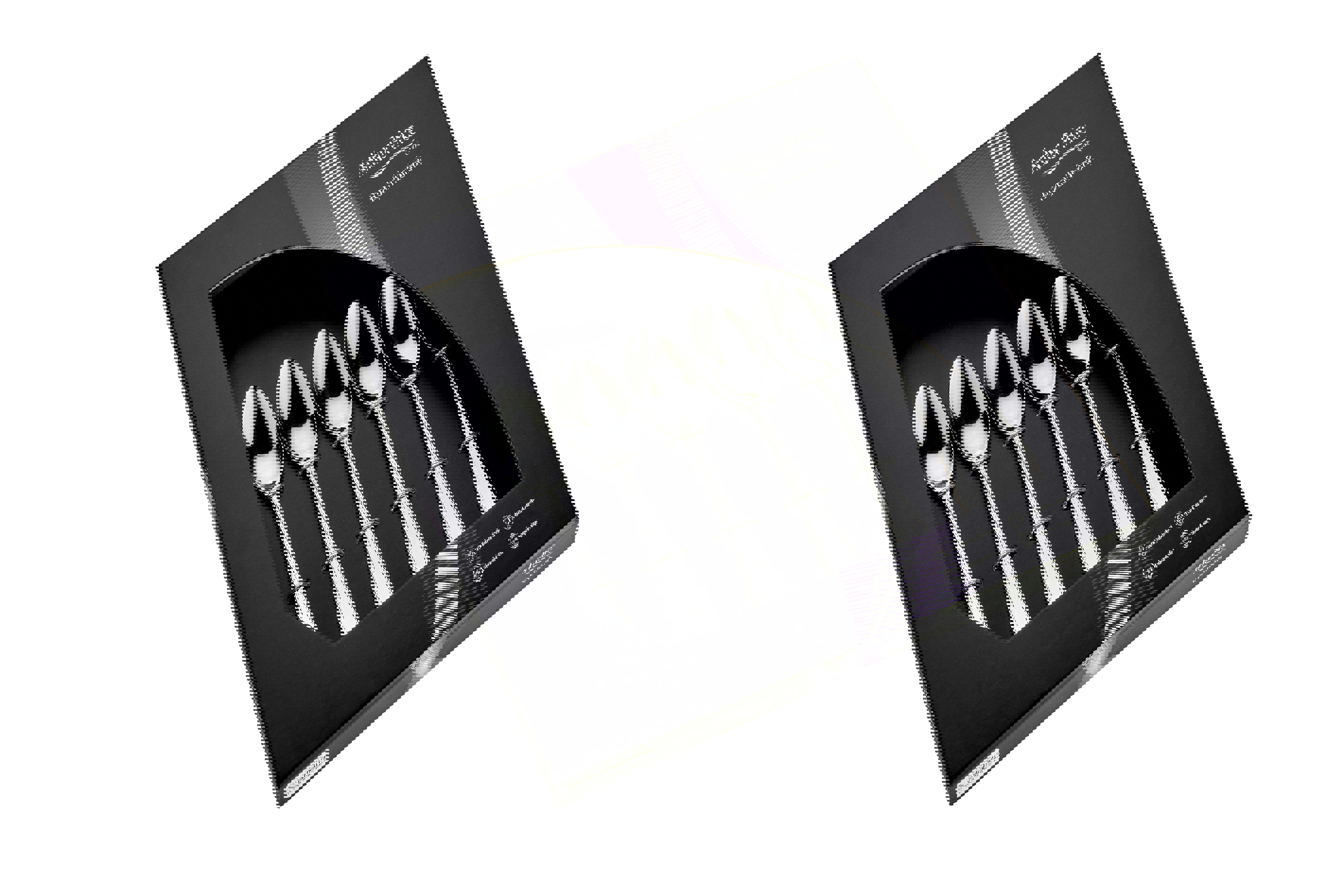 Arthur Price Rackhams 'Avalon' Stainless Steel Gift Boxed Of 6 Tea Spoonsfrom £19.50Compare prices2→A new cutlery collection from Arthur Price Available in 18/10 stainless steel and champagne gold, all stunningly packaged Avalon beautifully combines traditional and modern design elements It lends more→itself to everyday use and special occasions Each piece has a hammered textured finish to the handle which adds interest and perfect for catching the light and adding glamour to any table setting Produced from the finest 18/10 stainless steel, dishwasher safe and 50 year guarantee All beautifully packaged in plastic free packaging This gift cutlery set comprises of 6 x tea spoons