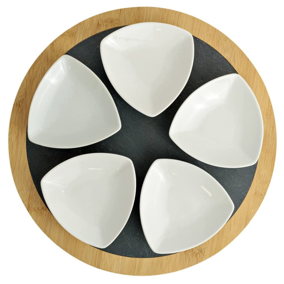 Round Widdop Food & Wine Set of 5 Dishes with Bamboo & Slate Set12.49Buy!£Onbuy.comDelivery: in United Kingdom ReportServe in style with this round slate tray and 5 white ceramic dishes. Holding five ceramic dishes, this set is perfect for serving nibbles at events...