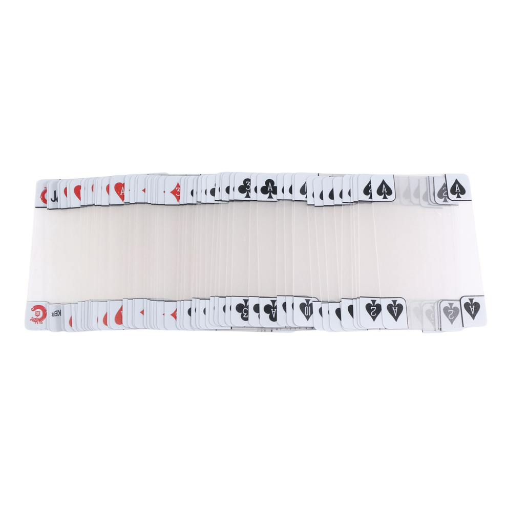 Transparent Plastic Waterproof Novelty Poker Index Playing Cards3.52Buy!£Onbuy.comDelivery: in United Kingdom ReportMaterialselectionPVCtransparentmatteplastic,interesting. Size:5.7*8.8cm1Pair/54Pcs...