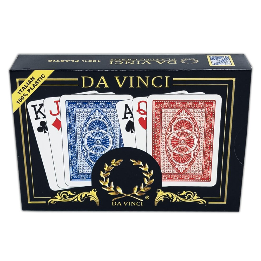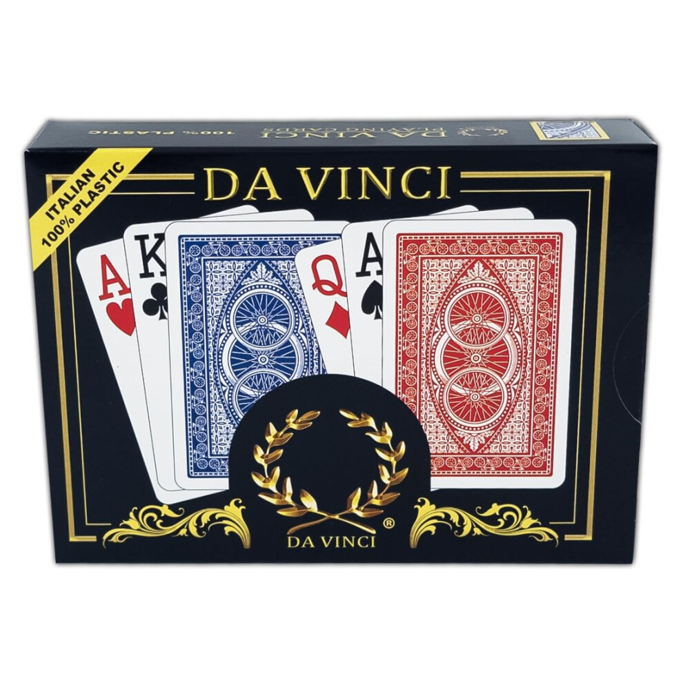 DaVinci DA VINCI Ruote Italian 100 Plastic Playing Cards 2-Deck Poker Size Set Jumbo Index w/Hard Shell Case and 2 Cut Cards 10-JP0531.64Buy!£Onbuy.comDelivery: in United Kingdom Report100% Plastic High Quality100% plastic these cards will last for years. Poker sized (2.5 x 3.5 inches) with Red and Blue Bicycle design decks and...