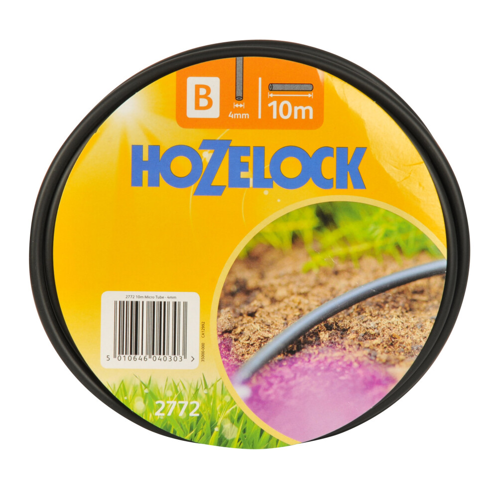 Hozelock Micro Irrigation Hose ? 4mm 10 m: Highly Flexible, UV-resistant, Carries Water to Drippers/sprinklers, Can be Burfrom £14.99 up to £400.00 Compare prices1→Features Discreetly carries water from your tap to your plants Highly flexible for easy installation Allows for discreet installation to pots,