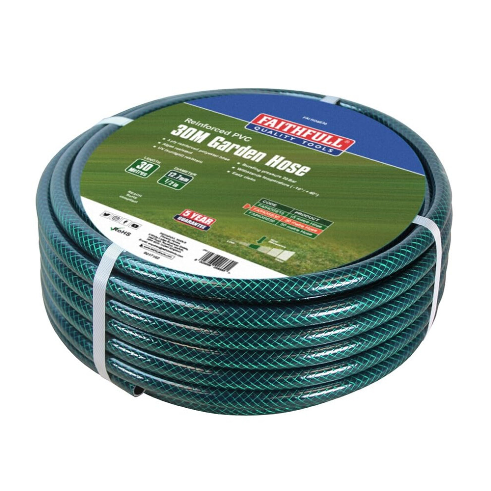 Faithfull 30M (98ft) Reinforced Hose 12.7 mm Diameter ? PVC Pipe FAIHOSE30 (1/2 Inch)from £27.00 up to £200.00 Compare prices2→Features Reinforced PVC Hose - Crafted from superior quality, flexible PVC with three-ply polyester fibre reinforcement, the Faithfull Hose is...