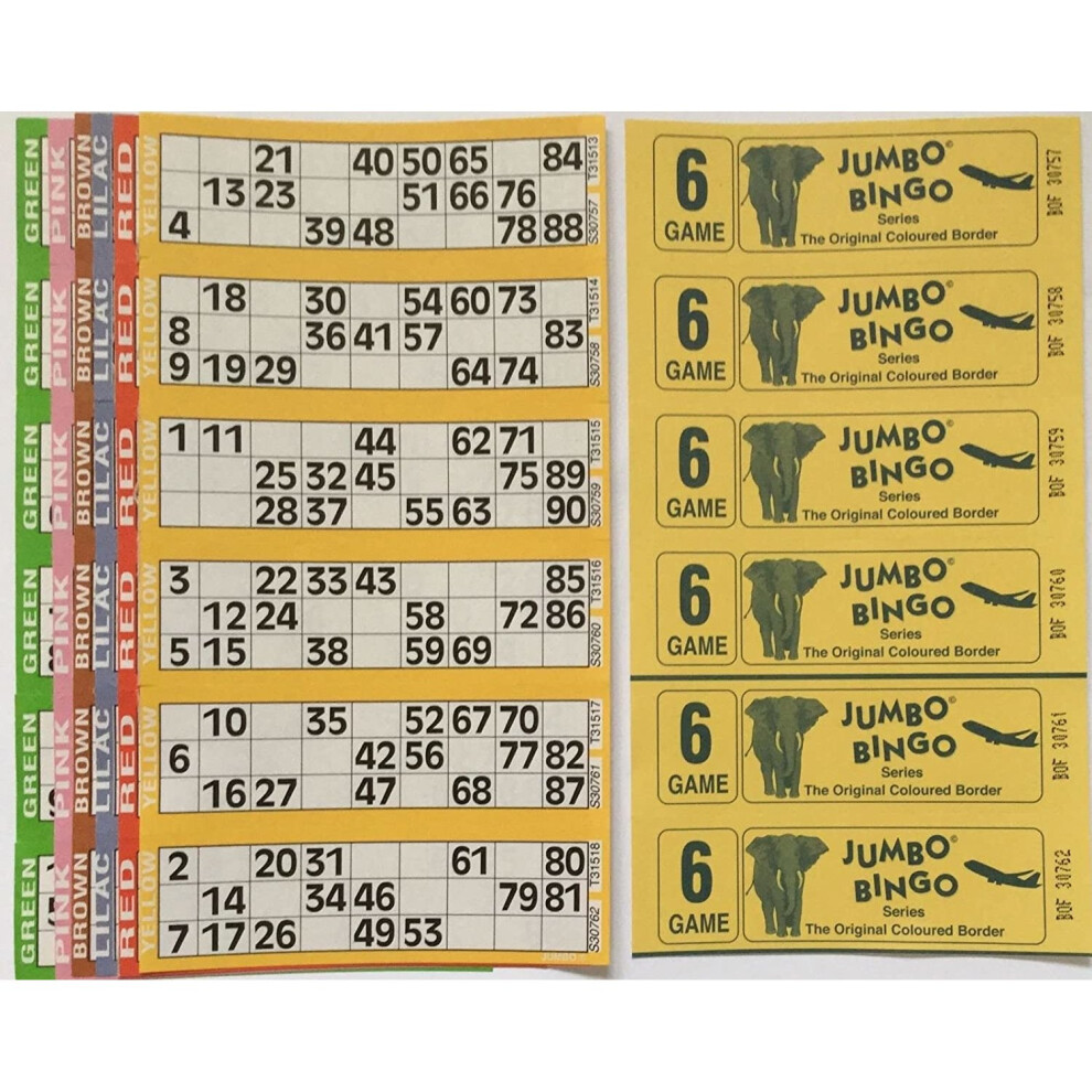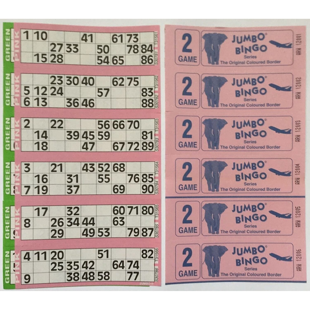 Jumbo 750 8 PAGE GAMES BINGO TICKETS 6 TO VIEW BINGO BOOKSfrom £21.33 up to £21.93 Compare prices2→Features Official Jumbo Brand Bingo Tickets Glued edges (no staples) for easy separation Big, bold, easy to read numbers 6 To View 8 Game Each...