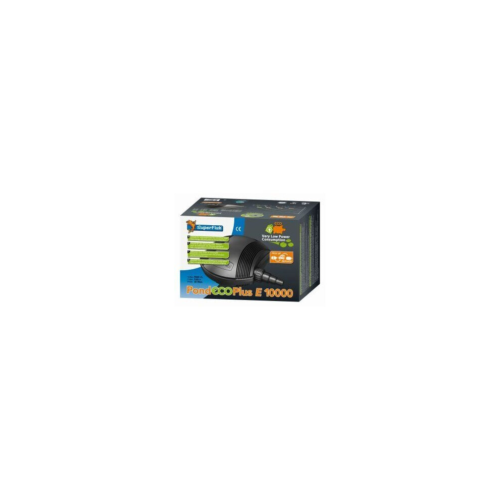 SuperFish Pond Eco Plus E 10000 9,200L/h 68w - 676184 676184108.99Buy!£Onbuy.comDelivery: in United Kingdom ReportUltra efficient professional filter pump for Koi and fish ponds. Moves large volumes of water with minimum power consumption. Includes a 2 year, 48...