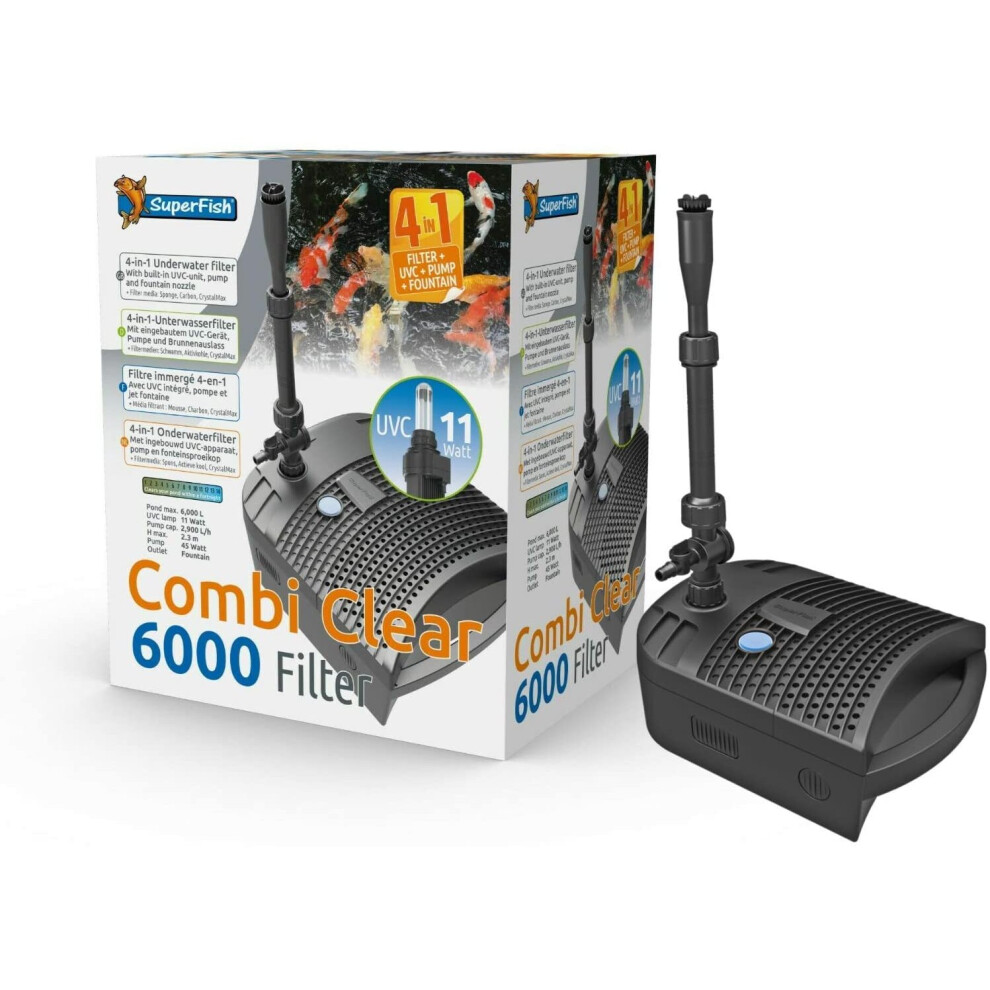SuperFish Combi Clear 6000 Fish Pond Filter All In One UVC Media Pump Fountain109.95Buy!£Onbuy.comDelivery: in United Kingdom ReportSuperfish Combi Clear 6000 Fish Pond Filter All In One UVC Media Pump Fountain