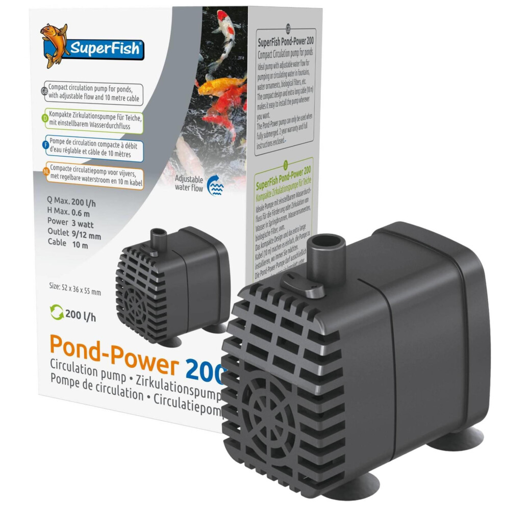 SuperFish Pond-Power 200 Pump Compact Submersible Adjustable Circulation Eco-Friendly Water Ornament Filter Pump with Long C22.95Buy!£Onbuy.comDelivery: in United Kingdom ReportThe Superfish Pond-Power 200 circulation pump is a submersible circulation pump designed for use in ponds, fountains, and water ornaments. The...