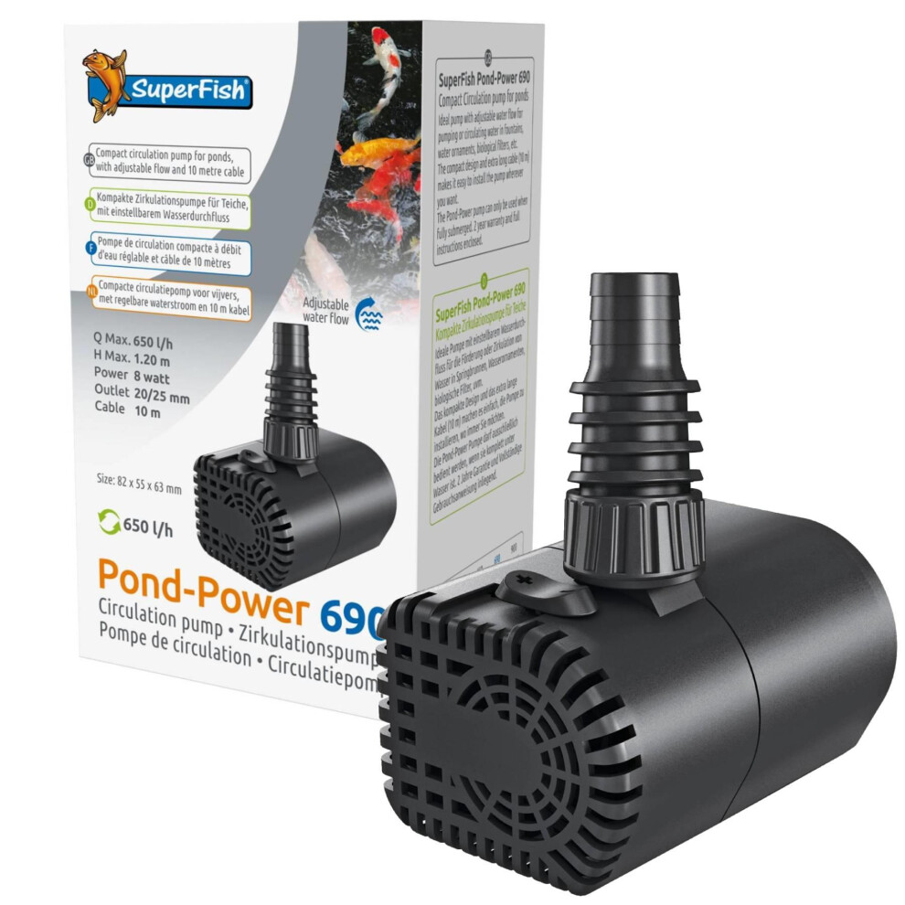 SuperFish Pond-Power 690 Pump Compact Submersible Adjustable Circulation Eco-Friendly Water Ornament Filter Pump with Long C28.95Buy!£Onbuy.comDelivery: in United Kingdom ReportThe Superfish Pond-Power 690 circulation pump is a submersible circulation pump designed for use in ponds, fountains, and water ornaments. The...