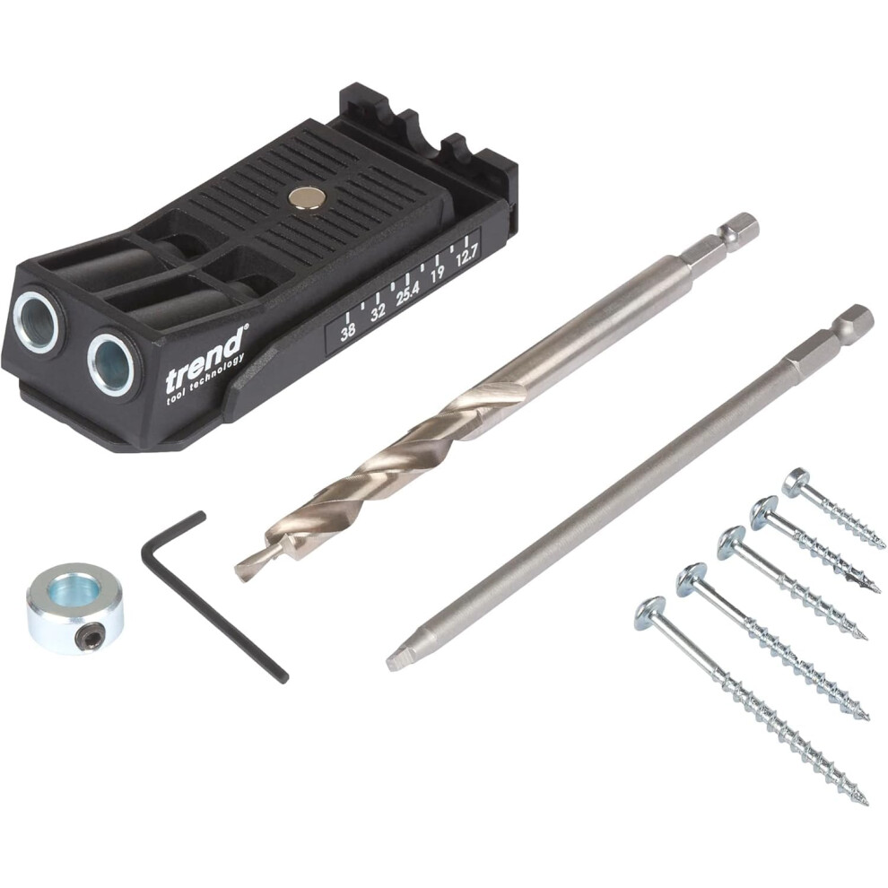 Trend Twin Pocket Hole Jig with HSS Drill Bit & Depth Setting Collar, Square Drive Bit & Pocket Hole Screws Selection, PH/JIfrom £38.55 up to £40.55 Compare prices1→Trend Twin Pocket Hole Jig with HSS Drill Bit & Depth Setting Collar, Square Drive Bit & Pocket Hole Screws Selection, PH/JIG/C