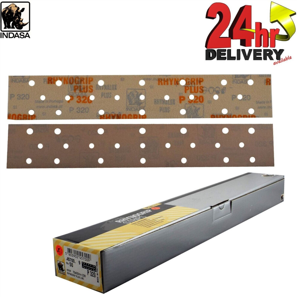 Indasa Rhynogrip Plusline Sanding Strips 70x420mm Grit:P320 Quantity:50 23 Hole Abrasive Grip System Sanding ScratchIndasa Rhynogrip Plusline Sanding Strips 70 x 420mm Grit:P320 Quantity:50 23 Hole Dry Application Only Premium Aluminum Oxide Suitable for metal...Price from £47.00Compare prices and buy Indasa Rhynogrip Plusline Sanding Strips 70x420mm Grit:P320 Quantity:50 23 Hole Abrasive Grip System Sanding Scratch OnBuy.com (United Kingdom) →£47.00OnBuy.com (United Kingdom) →£24.00Compare prices2→