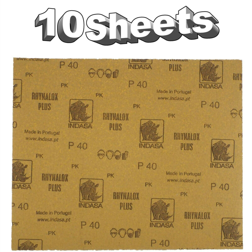 Indasa Rhynalox Plusline Production Paper P40 grit Sand Paper x 10 Sheets C22152-10Indasa Plusline Sanding Sheets for hand sanding and sheet sanding use. Great for metal work and woodworking applications. Dry applications only. £12.30OnBuy.comDelivery: in United Kingdom ReportBuy!