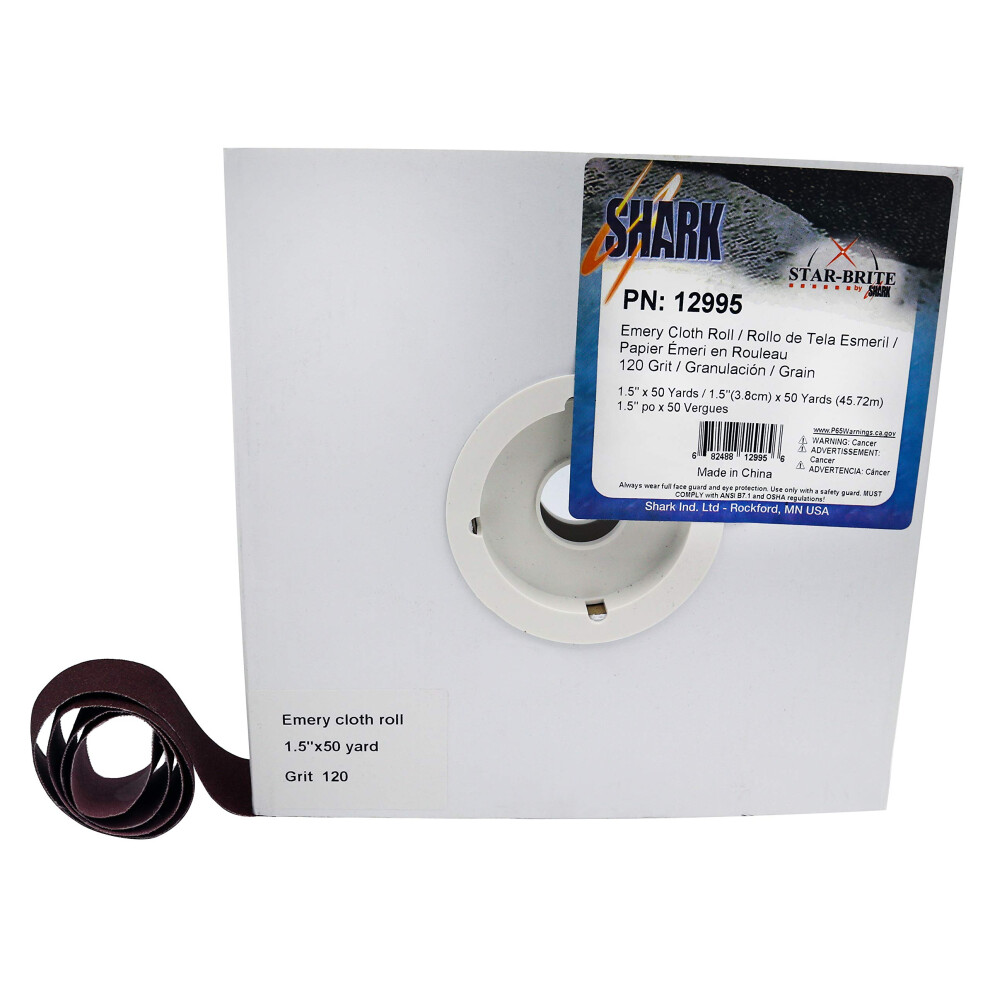 SHARK 12995 1.5-Inch by 50-Yards Aluminum Oxide Emery Cloth Roll 120-GritProductDescriptionAbrasiveemeryclothrollsformostshopneedsAvailablein1-Inchand15-InchwidthsIthasamultitudeofuseandisgreatforrustremovalandmetalsanding. £53.16OnBuy.comDelivery: in United Kingdom ReportBuy!
