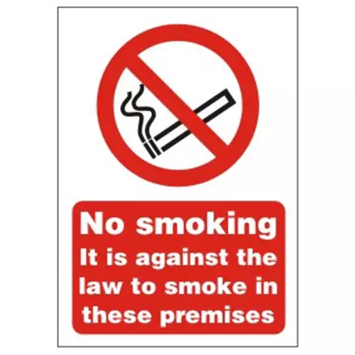 IT Luggage SECO Prohibition Safety Sign No Smoking It Is Against The Law To Smoke In These Premises Semi Rigid Plastic150 x 200mm - SB0from £2.46 up to £13.78 Compare prices2→Prohibition Sign - No Smoking It Is Illegal To Smoke In These Premises. Provides goods visibility and communication of important information within the work place. more→> Ensures compliance with health and safety requirements. Durable for long lasting use.