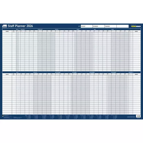 Staff Sasco Year Wall 915W x 610mmH With Wet Wipe Pen & Sticker Pack Board Mounted - 2410275 2410275 2026from £14.04 up to £39.54 Compare prices8→Sasco is the UKs number one brand in wall planners with over 50 years of expertise. The Sasco Staff Year Wall Planner is perfect for keeping track of staff availability training location or absence on more→any day of the working week. The landscape grid runs January to December the year is divided into two 6 month blocks one above the other using Mondays the start dates and displaying the complete year by week. Includes daily columns with index space for up to 40 staff or projects enabling you to view your staffs movements or project progress at a glance. Also contains a quick reference calendar for the following year so you can plan even further ahead. This planner is mounted on durable card and …