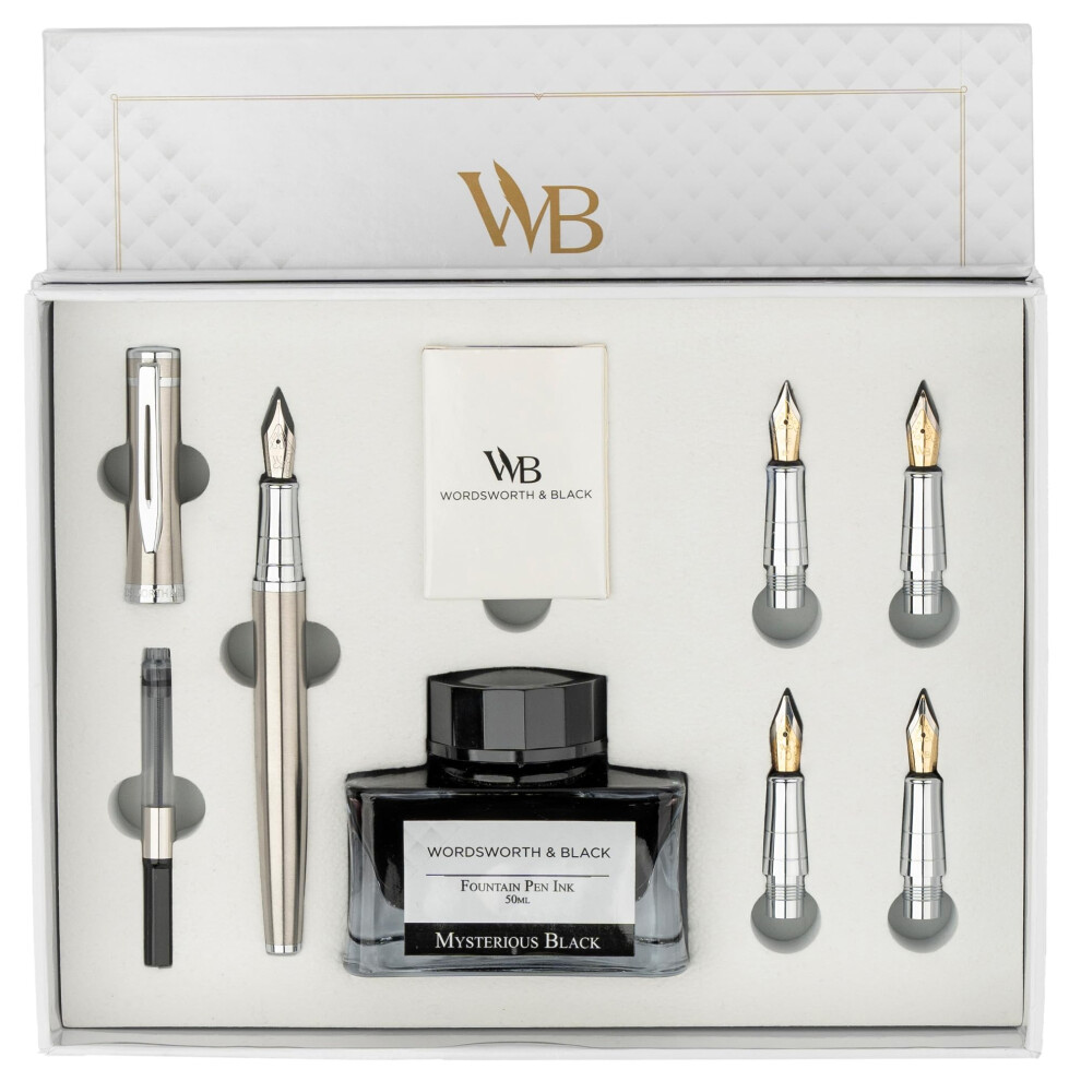 Wordsworth & Black Fountain Pen Set, Medium Nib, Includes 24 Ink Cartridges and Ink Refill Converter, Gift Case, Journaling,53.24Buy!£OnBuy.comDelivery: in United Kingdom ReportFeatures Elegant And Beauty, Made To Impress Everyone - Beautifully balanced metallic design adds a touch of modern class to your daily routine.