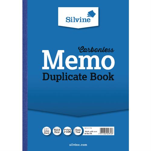 A4Tech Silvine A4 Duplicate Book Carbonless Ruled 1-100 Taped Cloth Binding 100 Sets - 714 714 (Pack 3)from £27.83 up to £42.00 Compare prices2→Quality NCR paper ruled feint and numbered 1-100 with index sheet no carbon required. Range includes invoice memo and receipt books. Memo. Size: 298x210 (A4). Packed 3.
