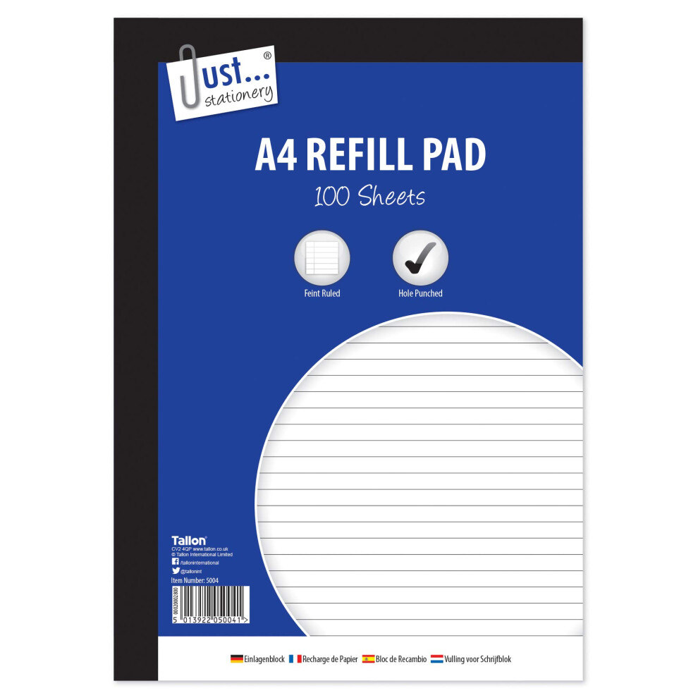 JUST stationery 100 Sheet A4 Refill Pad, White7.48Buy!£OnBuy.comDelivery: in United Kingdom ReportJust stationery 100 Sheet A4 Refill Pad, White is designed to meet everyday requirements with reliable performance and practical usability. The...
