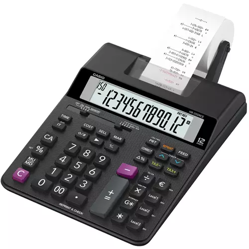 Casio HR-150RCE Desktop Printing Black HR150 RCEfrom £30.28 up to £50.45 Compare prices18→This printing calculator is ideal for use in the office or home. With its 12 digit display and 2.0 lines/second printing speed plus many other features this Casio model is ideal for business use. This more→mini printer can be powered by battery enabling you to print anywhere.