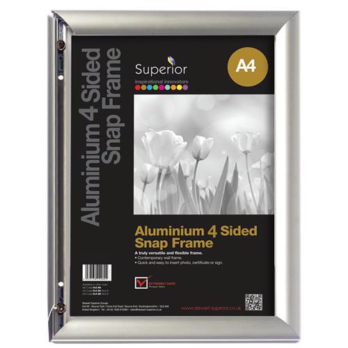A4Tech Seco A4 Brushed Aluminium Snap Frame Silver - AM9 AM9from £6.29 up to £27.36 Compare prices6→An Ideal Solution And Stylish Way For When You Require Attention And When You Want To Display Pictures Posters Documents Certificates Photos Marketing Advertisements Promotions Important Messages Etc. more→Ideal In Various Settings Whether This May Be At Your Business Office Schools Café Restaurants Stores Shopping Centres Cinemas Theatres Hospitals Etc. Easy Open Frame For Simple Changing Of Posters. No More Having To Take The Frame Down Remove The Back Panel And So-Forth. This Frame Allows You To Simply 'Snap Open' The Frame From The Front To Remove The Cover And Place Your Desired Display Straight In!Wall Mounting Means The Frame Is Ideal For Internal Or External Use. Holes Are Pre-Drilled …