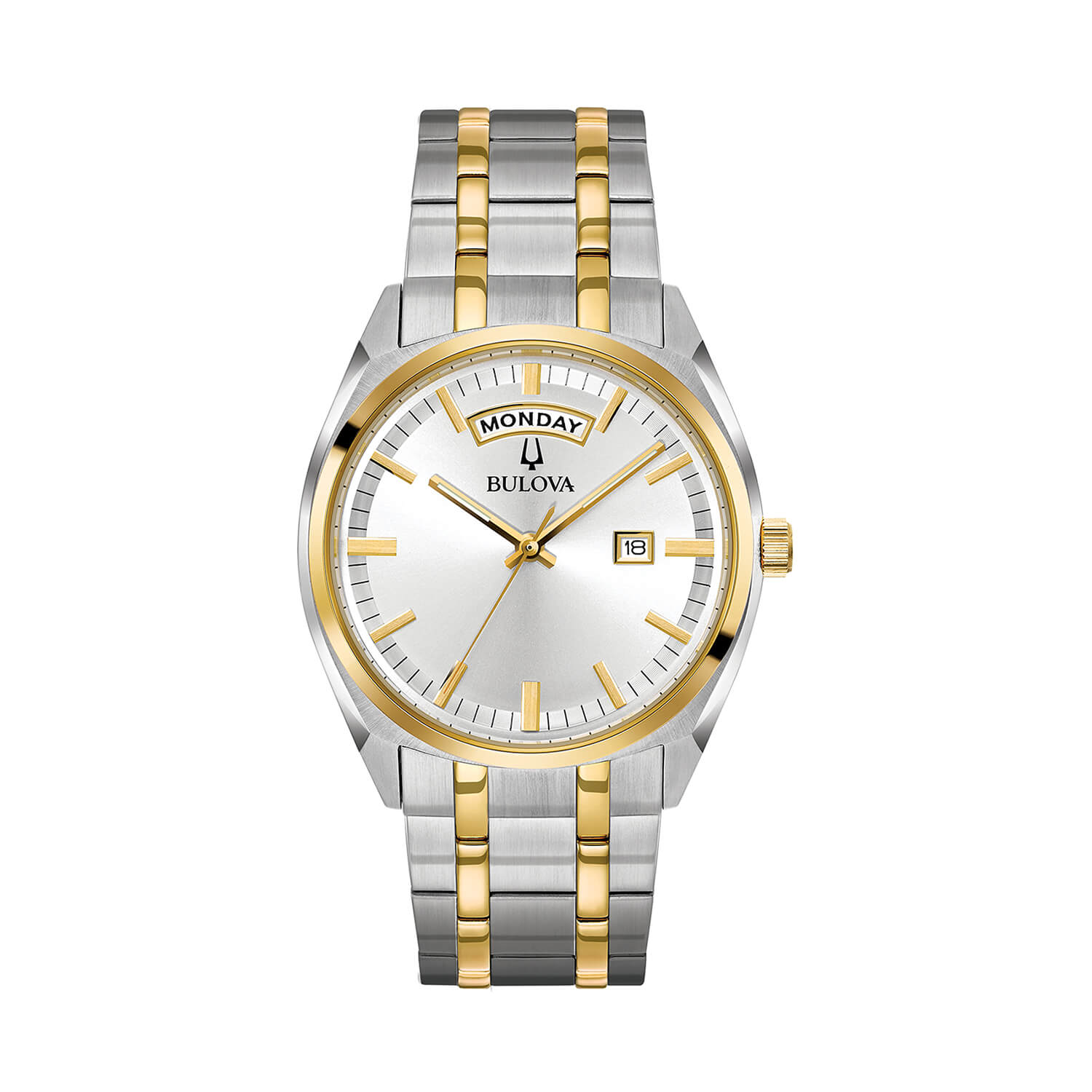 Surveyor 39mm Silver Dial Two Tone Steel Bracelet Men's299.00Buy!£Fraserhart.co.ukDelivery: in United Kingdom ReportThe Bulova men’s Surveyor is defined by exceptional quality and sophisticated aesthetics. Styled with a two-tone stainless steel case with a new three-hand day/date feature, silver-white dial with gol more→d-tone hands and markers, domed mineral glass, and gold-tone and stainless steel bracelet with short fold-over double-push closure.