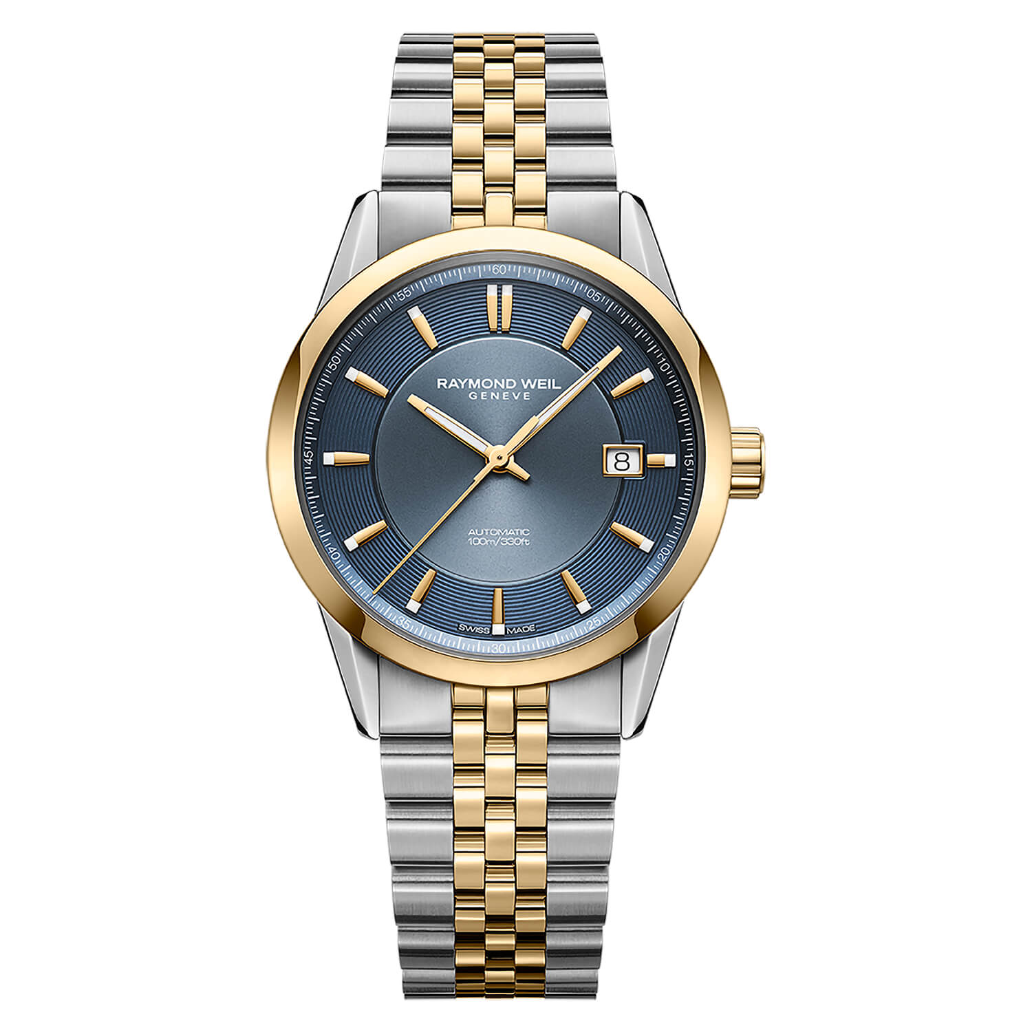 Freelancer Automatic 38mm Blue Dial Two-Tone Steel Bracelet Men's2,095.00Buy!£Fraserhart.co.ukDelivery: in United Kingdom ReportEquipped with an automatic winding movement housed in a 38mm case, this timepiece features a captivating sunrayed blue dial with a date function at 3 o’clock. The two-tone stainless steel bracelet has more→a double-push security system folding clasp, and the screw-down crown is embossed with the RW monogram for added refinement. The decorated Swiss-made automatic movement is visible through the transparent sapphire crystal case back. The freelancer automatic collection perfectly balances tradition and modernity, showcasing RAYMOND WEIL’s dedication to craftsmanship and artistic expression.