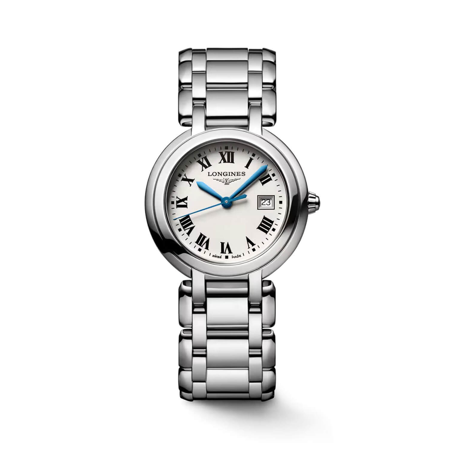 Primaluna 30mm Silver Dial Stainless Steel Bracelet Ladies1,200.00Buy!£Fraserhart.co.ukDelivery: in United Kingdom ReportA smooth 30mm stainless steel case and opaline ivory dial give this timepiece its refined, feminine character. The display is kept clean and functional, featuring a discreet date window and protected more→by a scratch-resistant sapphire crystal with anti-reflective coating for crisp visibility. A matching stainless steel bracelet with a triple-safety folding clasp ensures both comfort and security on the wrist. Powered by a precise quartz movement and water-resistant to 3 bar, the Longines Primaluna offers everyday elegance, ideal for someone who appreciates timeless design, subtle sophistication, and a watch that transitions effortlessly from day to evening.Please note this item is not available