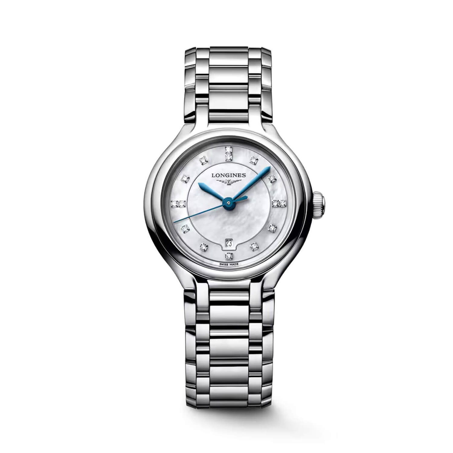 Primaluna 30mm Dial Stainless Steel Bracelet Ladies1,650.00Buy!£Fraserhart.co.ukDelivery: in United Kingdom ReportA luminous mother-of-pearl dial gives this timepiece its refined character, beautifully framed by a polished 30mm stainless steel case. The display is enhanced by a date window and protected by scratc more→h-resistant sapphire crystal with anti-reflective coating on both sides, ensuring clarity in every light. Its stainless steel bracelet features a triple-safety folding clasp with push-piece opening for secure, comfortable wear. Powered by a precise quartz movement and water-resistant to 3 bar, the Longines Primaluna blends technical confidence with timeless elegance, an effortlessly sophisticated companion for everyday moments and special occasions alike.Please note this item is not available