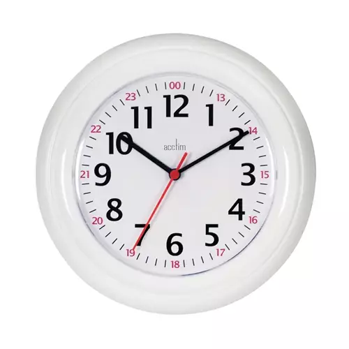 Acctim Wexham Quartz 24 Hour 225mm Diameter White - 21862 21862from £6.56 up to £20.73 Compare prices8→The Acctim Wexham 24 Hour Plastic Wall Clock Features Standard 1-12 Numbering As Well As An Outer 24-Hour Clock Ring. Powered By A Precision Quartz Movement For Accurate Timekeeping The Bold Red Outer more→Ring Lets You See 24-Hour Time At A Glance. A Plastic Lens Protects The 225Mm White Dial From Damage Or Tampering.
