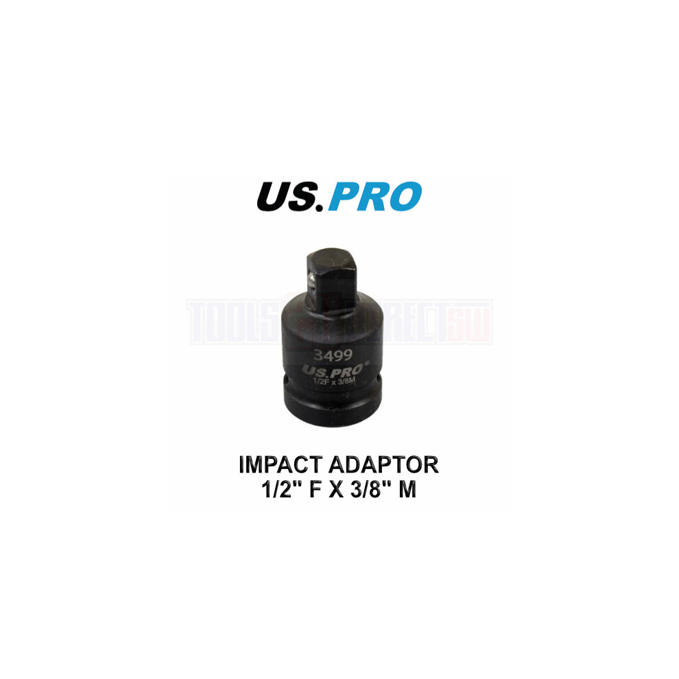 US PRO Tools Impact Socket Adaptor Step Up Adapter 1/2" Inch F to 3/8" Inch M 3499An impact adaptor made from strong Chromium Molybdenum steel and hardened to HRC 43-45. Adaptor 1/2" Female x 3/8" Male Length: 34mm ...Price from £4.88 up to £86.91 Compare prices and buy US PRO Tools Impact Socket Adaptor Step Up Adapter 1/2" Inch F to 3/8" Inch M 3499OnBuy.com (United Kingdom) →£5.00OnBuy.com (United Kingdom) →£5.00Onbuy.com (United Kingdom) →£5.00OnBuy.com (United Kingdom) →£12.00T. H. Baker (United Kingdom) →£18.00Compare prices10→
