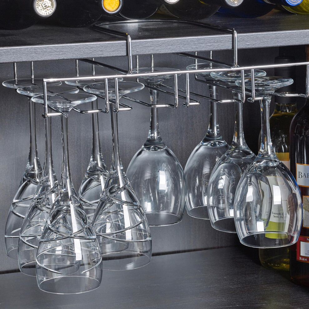 Chrome Under Shelf Hanging Metal Wine Glasses Stemware Rack8.95Buy!£Onbuy.comDelivery: in United Kingdom ReportStay neat with this superb wine glass holder. Store your wine glasses in style with this elegant, space-saving, modern, metal wine glass holder. ...