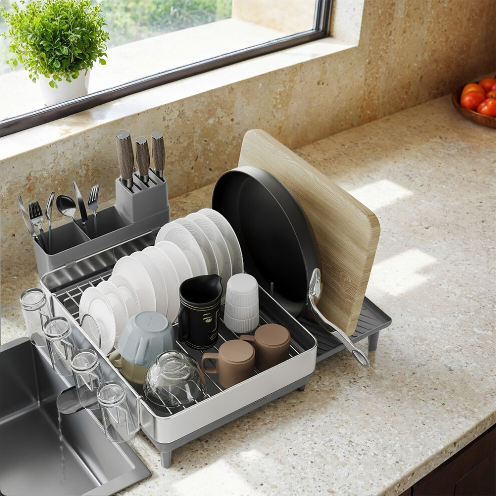 Joseph Joseph DUO Expandable Dish Rack - Dark Grey, Greyfrom £25.99 up to £64.99 Compare prices2→You can create more draining space in your kitchen with this handy Joseph Joseph Duo Expandable Dish Rack. It's designed to give you the space that you need to cope with a variety of items when drying more→your dishes. This has a sliding base that can be extended for your convenience to store more dishes on to dry them effortlessly. It has a movable utensil pot, a sloping base to channel water away into your sink and an integrated spout to remove excess water. You can be sure that this rack will stay in place whilst in use as it has non-slip feet on the base so you can wash and dry by hand easily. It holds up to a 16-piece dining set so after you've hosted a dinner party, you'll be well equipped …