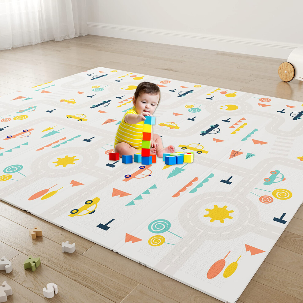 AIYAPLAY Foldable Baby Play Mat, Baby Playpen, Traffic & Grey Diamond Theme 431-086V00MXfrom £24.99 up to £25.99 Compare prices2→Little ones love to play and explore and AIYAPLAY's playmat provides a safe and secure space for them. Thanks to the foldable sides, it creates a fenced-in area that keeps them from wandering off. The more→kids playmat is crafted from thick, padded XPE foam with stitched edges, providing a comfy surface for crawling. With its double-sided design, one side sparks imaginative play while the other blends seamlessly with your home decor. Features: Foldable 16 cm sides: This playmat easily converts into a playpen, providing a secure area for toddlers to explore and play without wandering off Double-sided playmat: One side offers a lively traffic design, while the other displays a stylish diamond pattern …