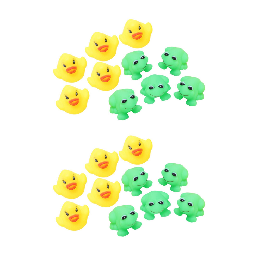 2 Set Of Frogs & Ducks 10Pcs+10Pcs Toys9.36Buy!£Onbuy.comDelivery: in United Kingdom ReportCan float on the water Can make "~ " sound when squeezered Made by safe rubber, non-toxic Great for bath time and baby's toys Funny...