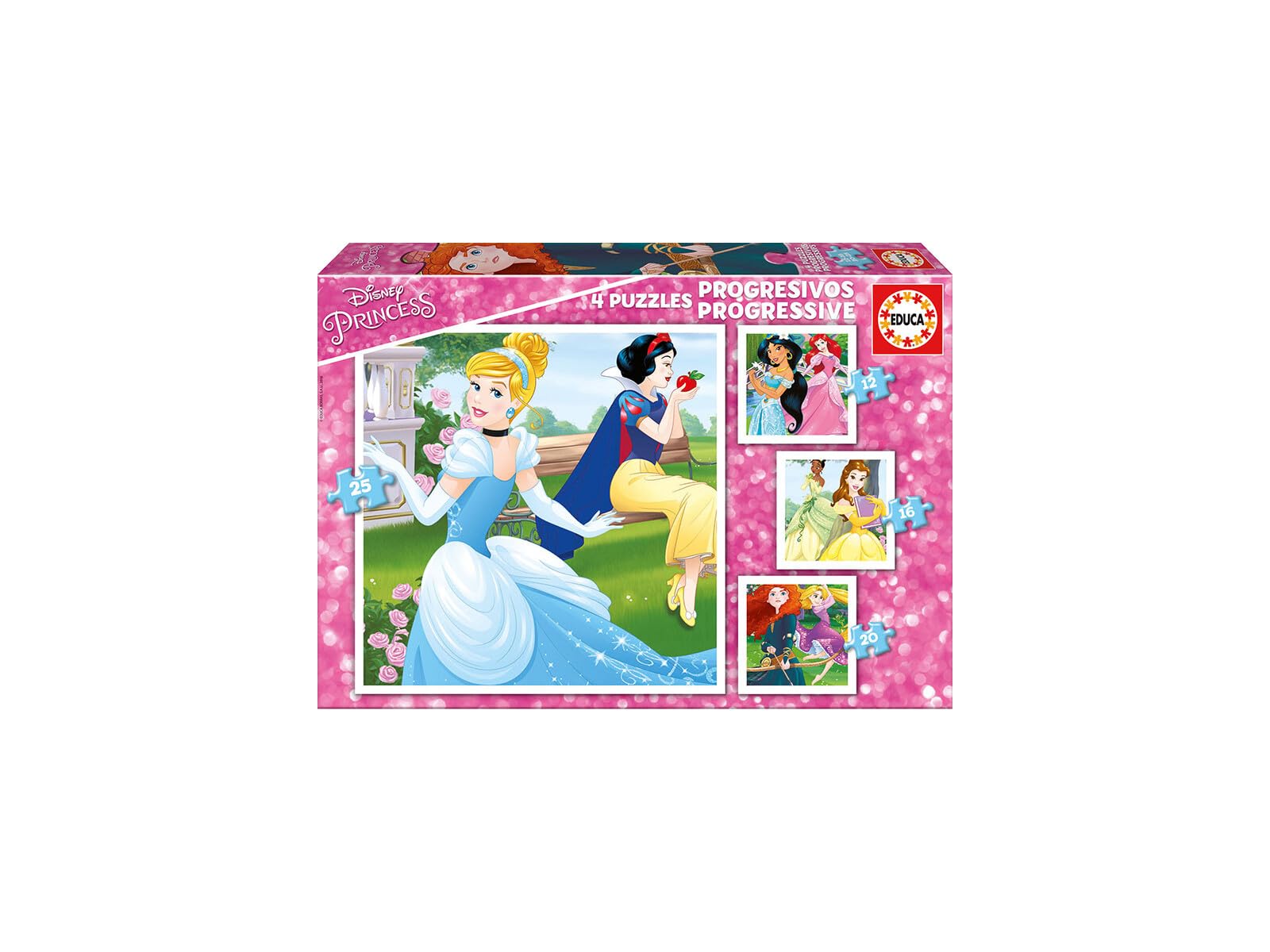 Educa 17166 Progressive Puzzle Disney Princess 12 + 16 + 20 + 25 1716611.09Buy!£rarewaves.comDelivery: in United Kingdom ReportEduca 17166 Progressive Puzzle Disney Princess 12 + 16 + 20 + 25Set of 4 progressive puzzles with 12 16 20 and 25 pieces. Each progressive puzzle has different pieces so that children can try more and more→more difficult puzzles as they get and learn how to put the puzzles together. An excellent activity to stimulate the coordination of hands and eyes. Suitable for ages 3+