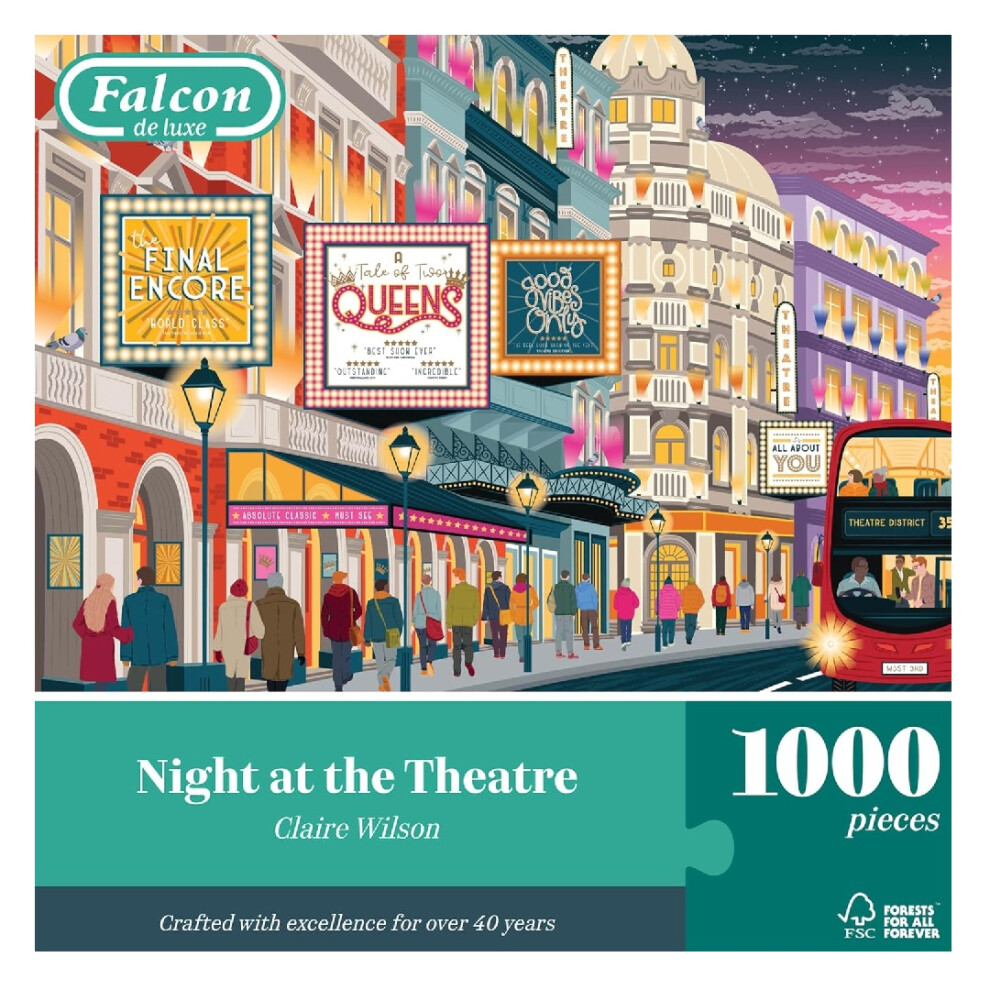 Falcon De Luxe Night At The Theatre 1000 Piece Jigsaw Puzzle9.99Buy!£Onbuy.comDelivery: in United Kingdom ReportILLUSTRATED BY CLAIRE WILSON: This adults jigsaw puzzle is a beautifully illustrated large 1000 piece puzzle featuring a dynamic design bringing the...