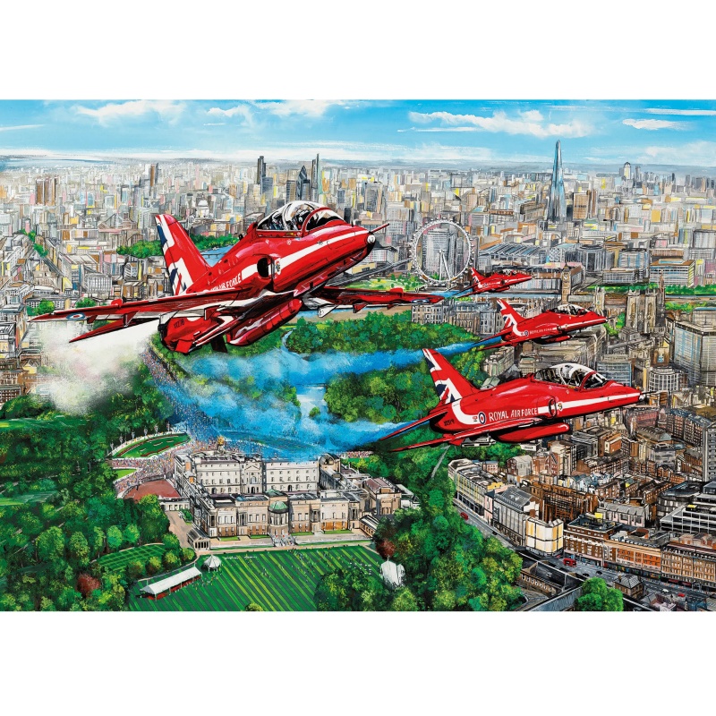 REDS Gibsons Over London 1000 Piece Puzzle G6335from £16.00 up to £29.72 Compare prices3→Experience daring aerial acrobatics in this 1000 piece jigsaw puzzle by Matthew Emeny. The Red Arrows have been a favourite at air shows since their first display in 1965 and their skilful manoeuvres more→are always a sight to behold. They can be seen racing through the sky on all manner of Royal and Military occasions. . In this vibrant puzzle design, the Reds, are performing a flypast over Buckingham Palace. All nine jets take part, and in this scene four are in view from the right side of the formation. This 1000 piece jigsaw puzzle was painted by the talented artist Matthew Emeny. *High quality 1000 piece jigsaw puzzle *Included in the box is a handy print of your puzzle *Made in the UK Europe …