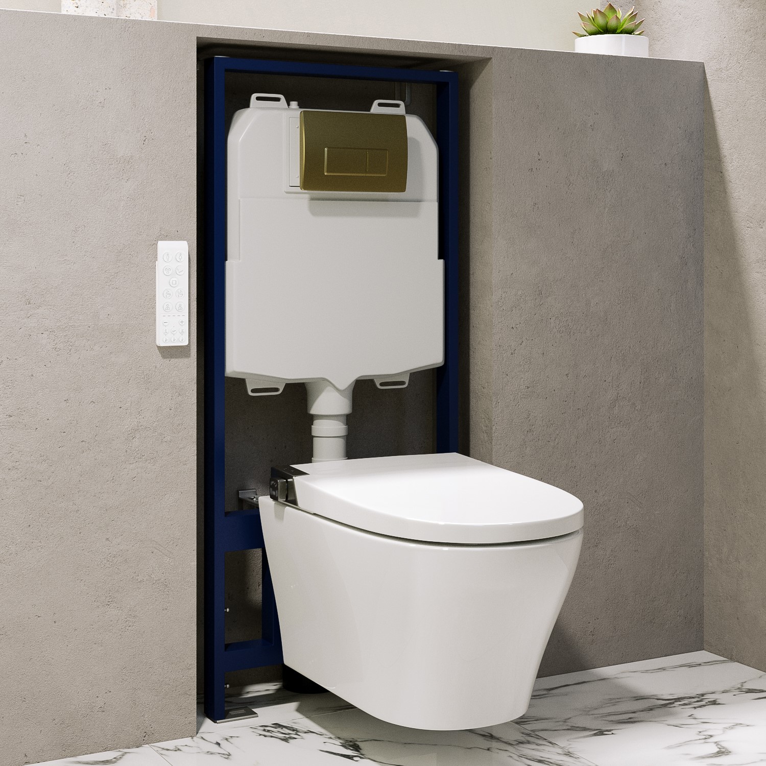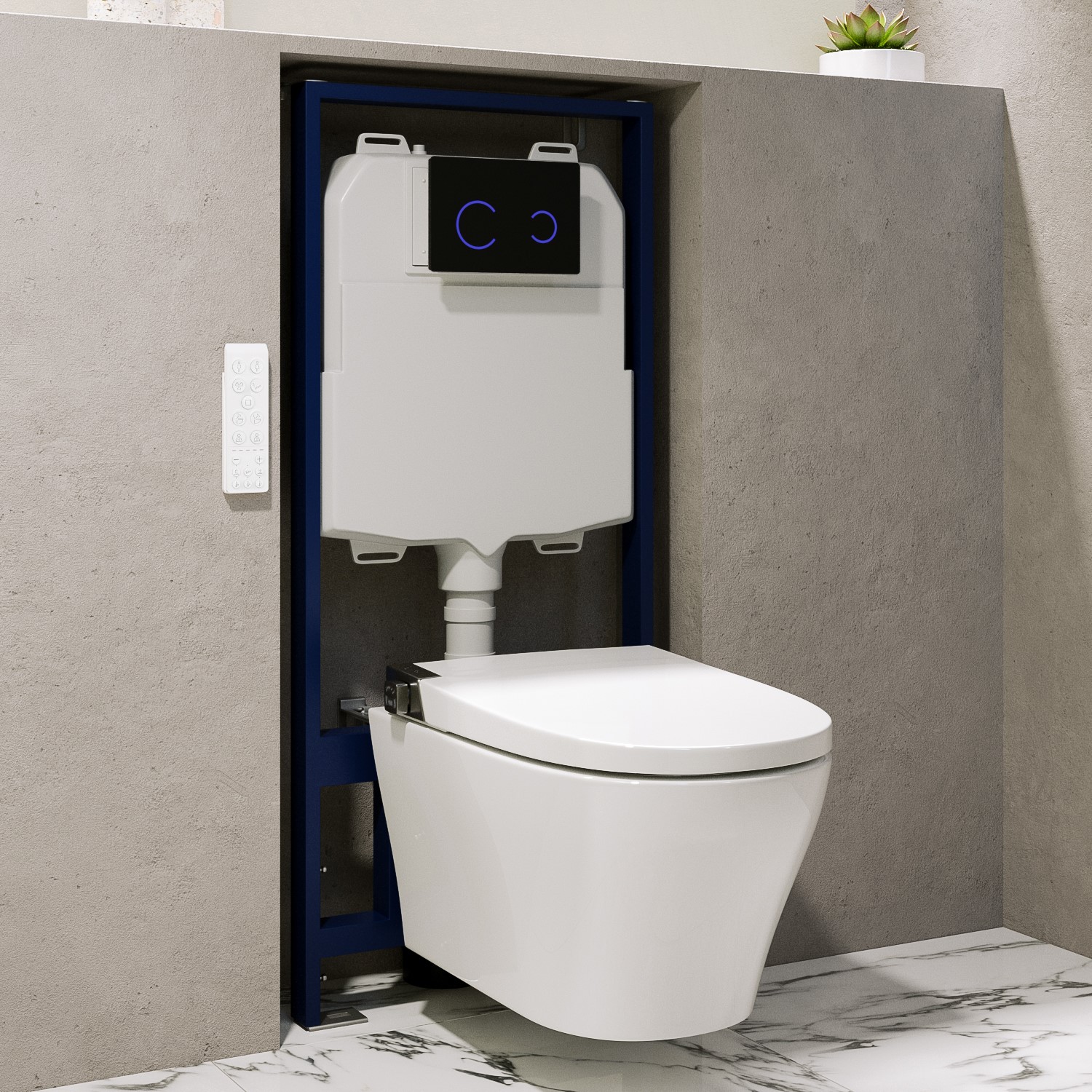 Smart Wall Hung Bidet Japanese with 1160mm Frame Cistern and Black Sensor Flush Plate - Purificare White BUN/BeBa2688649.97Buy!£BetterBathrooms.comDelivery: in United Kingdom ReportThis bundle includes Wall Hung Smart Bidet Toilet Round - Purificare . 1 x Purificare Black Glass Sensor Pneumatic Flush Plate 1 x Purificare 1160mm Pneumatic Frame and; Cistern Smart Toilet Featur more→es . Wireless remoteControl your smart toilet using the handy integrated control dial or the wireless magnetic remote. The remote also comes with a convenient holder that attaches to a wall. Self-cleaning hoseThis intelligent toilet is incredibly hygienic. It automatically cleans itself before use or every 72 hours when not in use to eliminate bacteria. Adjustable retractable hoseSet your ideal hose position to one of five angles. The hose is concealed within the ceramic toilet bowl when not …