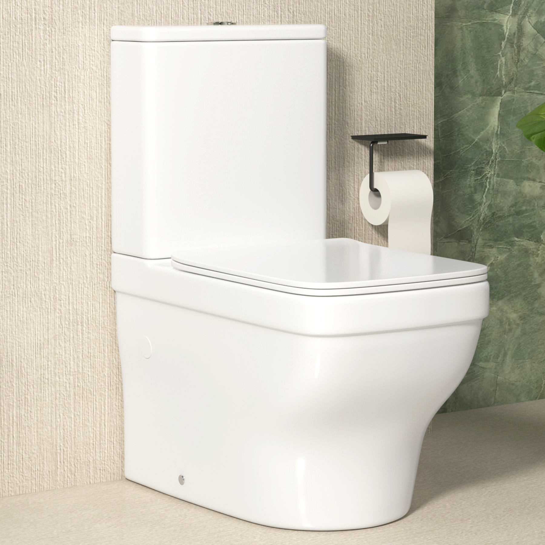 Elena Rimless Back to Wall Toilet Pan and Slim Soft Close Seat with Concealed Cistern BTW612-XTY006S184.99Buy!£Royalbathrooms.co.ukDelivery: to United Kingdom ReportBack To Wall Rimless Toilet Square Pan with Soft Close Seat & Consealed Cistern Give your bathroom a sleek upgrade with the elegant back-to-wall toilet and concealed cistern. Made from high-quality gl more→azed high gloss white ceramic with a premium thermoplast seat , the floor-standing Square pan design exudes modern elegance into any bathroom space. The quick-release slim, soft-close seat adds a bold, stylish touch while ensuring a smooth, quiet close with no slamming. Equipped with easy-clean power flush rimless technology for optimal flushing. The Dual flush cistern allowing you save on water consumptionand concealed pipework for a tidy look, this back-to-wall toilet redefines comfort and