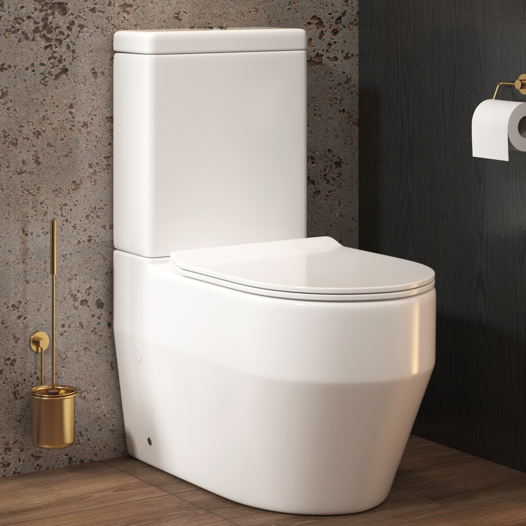Aspen Close Coupled Rimless Toilet and Slim Soft Close Seat with Cistern CWC770-RTS670S259.99Buy!£Royalbathrooms.co.ukDelivery: to United Kingdom ReportClose Coupled Rimless Toilet and Slim Soft Close Seat with Cistern Bring style, comfort, and functionality together with this close-coupled toilet. Made from premium ceramic material , it delivers lon more→g-lasting beauty, easy maintenance, and a flawless high-gloss finish . The elongated oval bowl offers enhanced comfort, while the premium thermoplast seat ensures durability with a slim soft-close, quick release mechanism for noise free operation and effortless cleaning. Its rimless power flush technology ensures superior water flow for thorough cleanliness, maintaining strict hygiene with minimal effort. The dual flush cistern with a chrome push button promotes water-saving efficiency, while