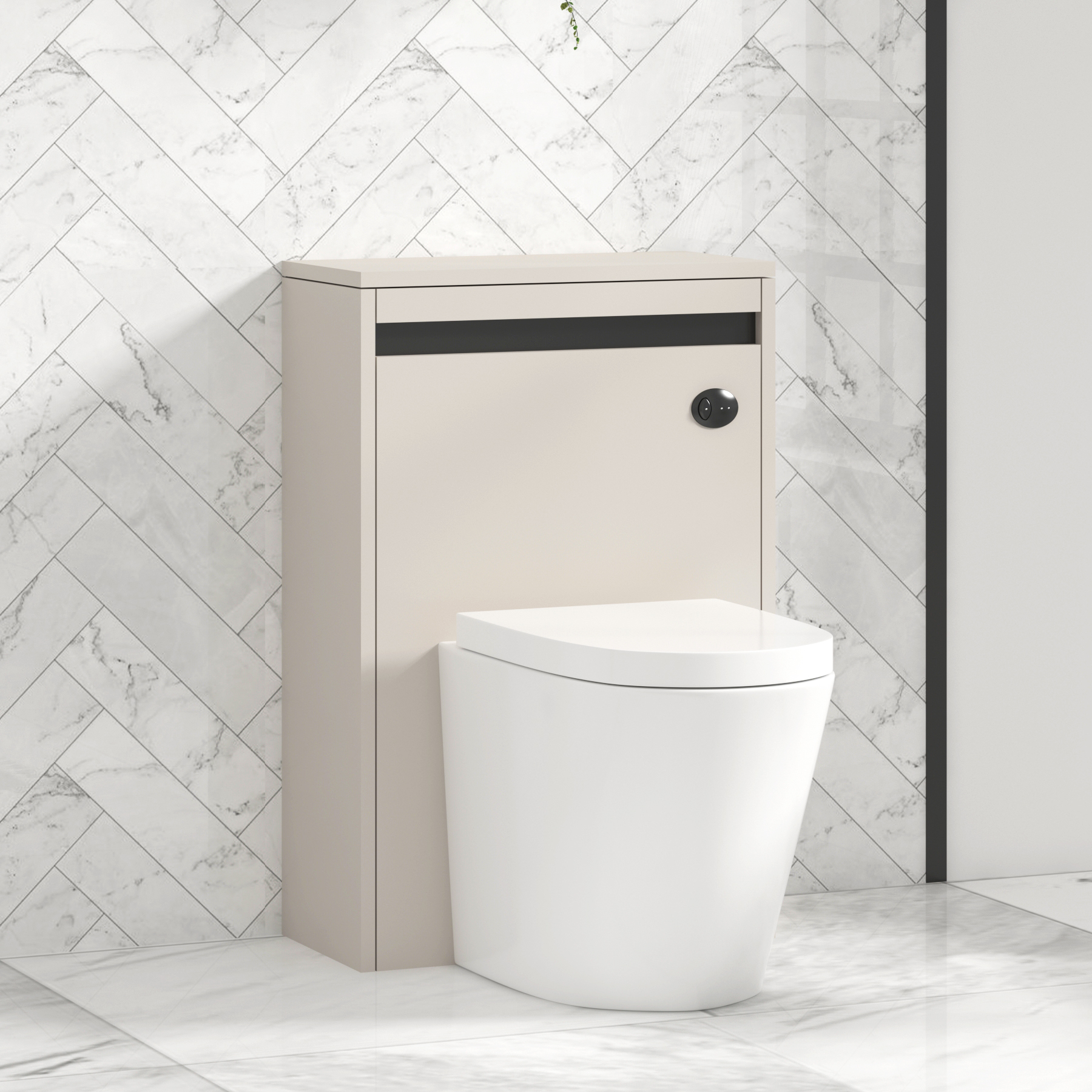 Orion 540mm Warm Taupe BTW WC Unit with Cesar Rimless Toilet Pan & Seat, Cistern | Black Accent Trim LX741BH-BTW083319.99Buy!£Royalbathrooms.co.ukDelivery: to United Kingdom ReportOrion 540mm Matt White Bathroom WC and Back to Wall Toilet Unit with Soft Close Seat, Concealed Cistern | Black Accent Trim Orion WC unit is specifically crafted for back-to-wall toilets, providing a more→seamless integrated look. Much more than just a functional piece, it combines a luxurious finish, space efficient design and practical features making it a standout choice for modern bathrooms. Perfect to pair with a variety of modern back-to-wall toilet bowls, it's a versatile choice for a wide range of bathroom styles. This back-to-wall toilet and cistern unit set comes complete with 5-Years Exceptional Guarantee. Water Closet (WC) Unit Warm Taupe Finish Colour Co-ordinate with a Matt White