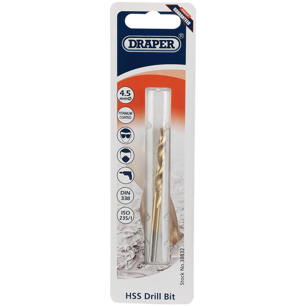 | The 4.5mm Draper HSS Titanium Coated Drill Bit is a versatile mid-size option, ideal for drilling clearance holes for screws and bolts, as well as general workshop applications. This popular diameter is commonly used in carpentry, metalworking, and plastic fabrication, making it a valuable addition to any tool kit. Constructed from metric-sized high-speed steel with a titanium coating, this drill bit offers superior strength and longevity compared to standard HSS bits. The titanium enhancement provides increased hardness and heat resistance, allowing the bit to maintain its cutting edge through repeated use. Whether you're working with wood, metal, or plastic, this bit delivers consistent, reliable … | Price from £0.95Compare prices and buy Draper HSS Titanium Coated 4.5mm Pack of 1 TH29MC Compare prices3→ |
